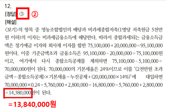 예금일반 12번 문제 정답 2번 (13,840,000원) 으로 수정합니다.